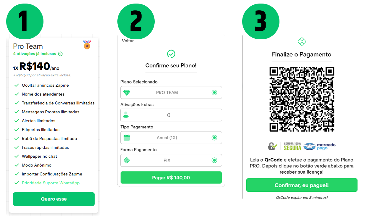 - 3) Escaneie o QrCode, quando efetivado clique em "Confirmar, eu paguei!"